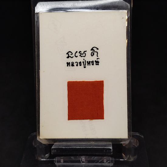 ภาพถ่ายรุ่นแรก ปี 2541 หลวงปู่หงษ์ พรหมปัญโญ วัดเพชรบุรี หลังยันต์ปั้ม ติดจีวร เคลือบพลาสติกเก่า สภาพสวย ไม่ผ่านการใช้ |