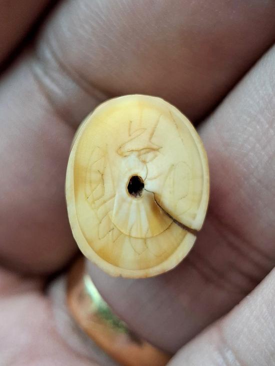 รายละเอียด ด้านข้างมีรอยเขี้ยวลั่น มีจรรรอบ งานแกะใหม่ยุคหลัง