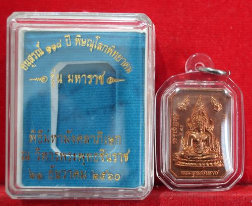ชื่อพระเครื่อง เริ่ม100บาท พระพุทธชินราชหลังสมเด็จพระนเรศวร 118ปีพิษณุโลกพิทยาคม ทองแดงลงยาลายธงชาติ สวยมาก กล่องเดิม พร้อมเลี่ยม
