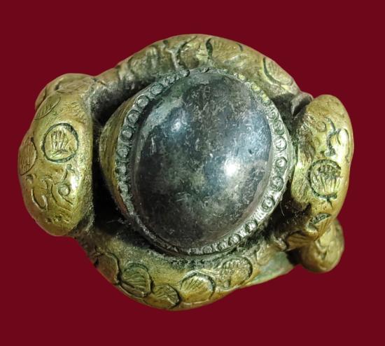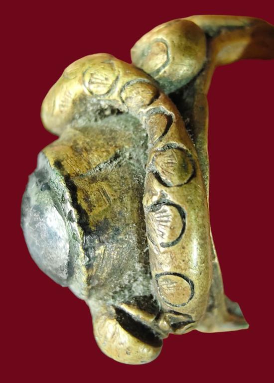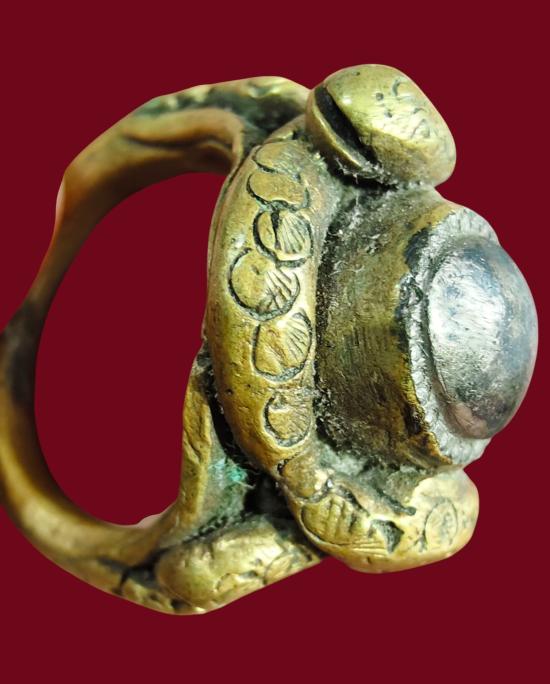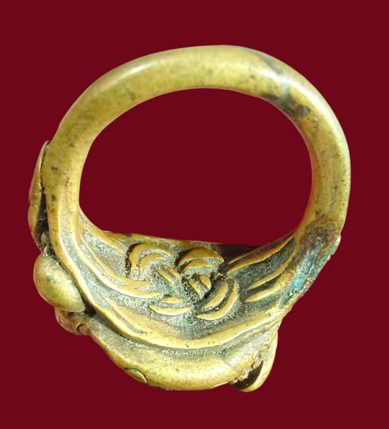รายละเอียด ตัวลายแหวนเใช้เหล็กตอกคล้ายๆตุ๊ดตู่ตอก ที่บริเวณใต้ท้องแหวนก็เป็นงานเชื่อม สวยเก่าแท้คลาสสิคครับไม่ทราบอาจารย์