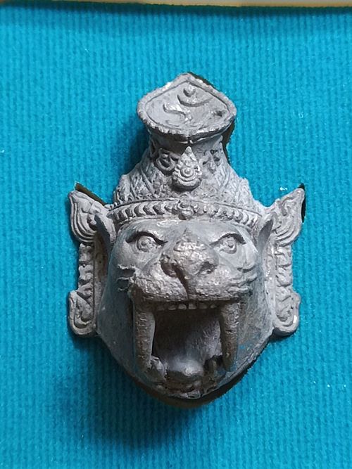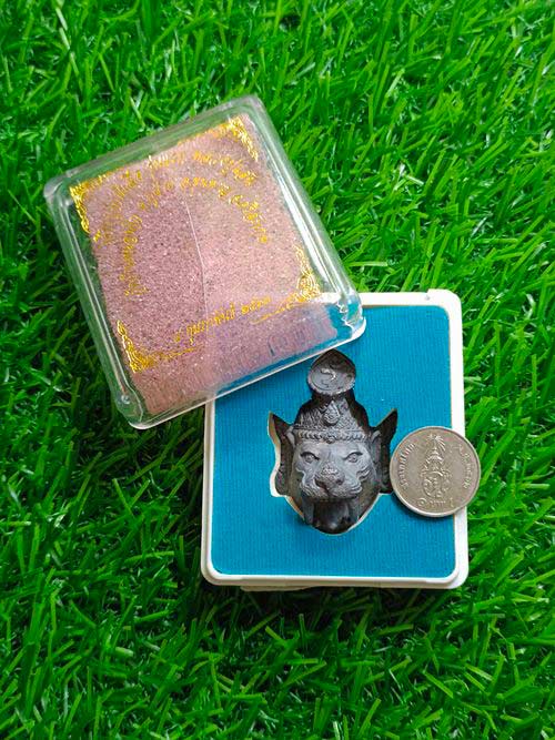 " วัดใจ เคาะเดียวแดง " เศียรปู่ฤาษีเสือ รุ่นแรก หลวงปู่แสน วัดบ้านหนองจิก จ.ศรีสะเกษ ปี 2561 เนื้อตะกั่ว ฝังตะกรุด หมายเลขตอง 333 |