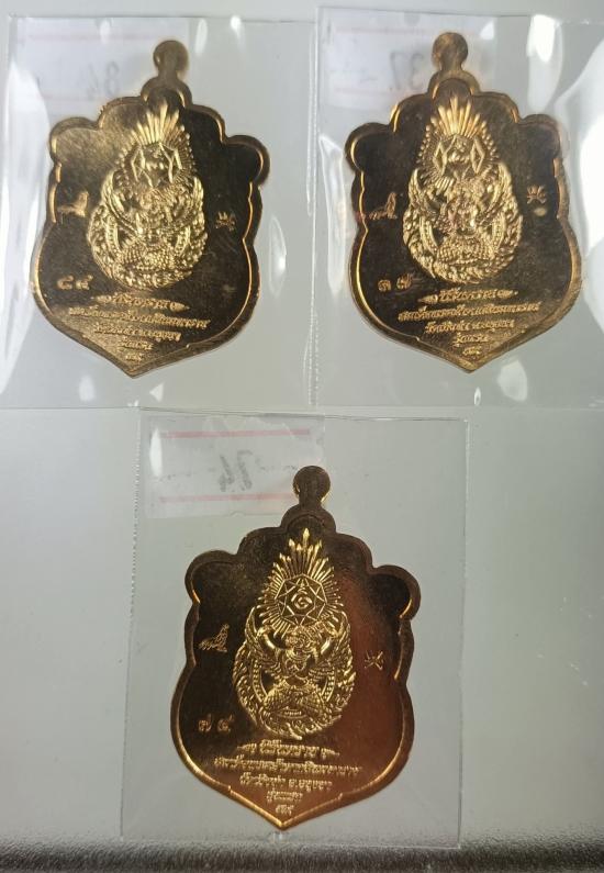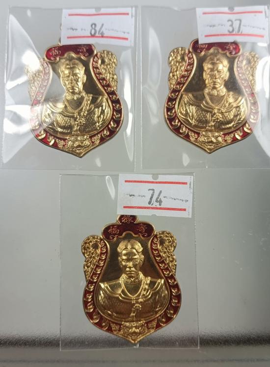 เหรียญเสมา สมเด็จพระเจ้าตากสินฯ หลังตรามหาเดช รุ่นแรก นิรันตราย วัดเชิงท่า จ.พระนครศรีอยุธยา ปี 2559 เนื้อสัตตะโลหะ โบราณ ลงยา อักษรแดง กนกแดง 3 เหรียญ เคาะเดียว |