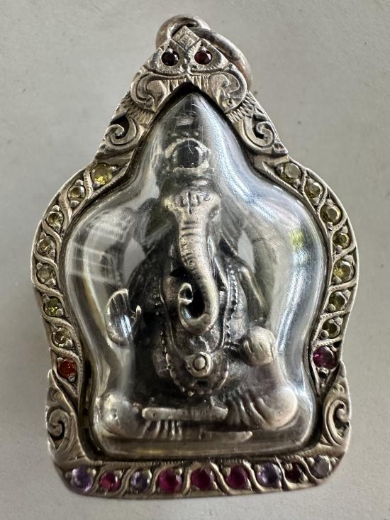 *เคาะเดียว*พระพิฆเนศ เนื้อเงินพร้อมเลี่ยมกรอบฝังพลอย พระพิฆเนศหล่อขึ้นรูปสวยคลาสสิค