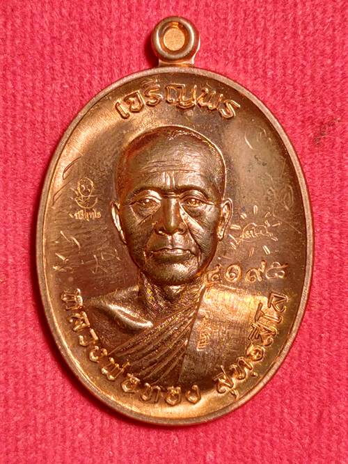 รุ่นแรกรุ่นเดียว เหรียญ เจริญพรบน หลวงพ่อทอง สุทธสีโล หลวงพ่อคูณ ปลุกเสกให้ลูกศิษย์ ออกวัดบ้านไร่ ปี 56 เนื้อ ทองแดงผิวไฟ หมายเลข 4195 มีจาร สภาพสวย เคาะเดียวแดง |
