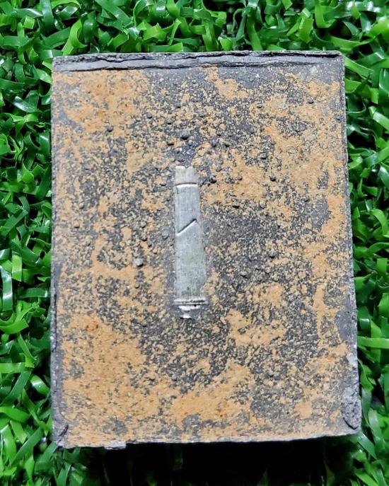 ขนาดกว้าง 2.2 ซม. สูง 2.7 ซม. หนา 0.6 ซม. ตอกโค้ด "ชนะ" ใต้องค์พระ