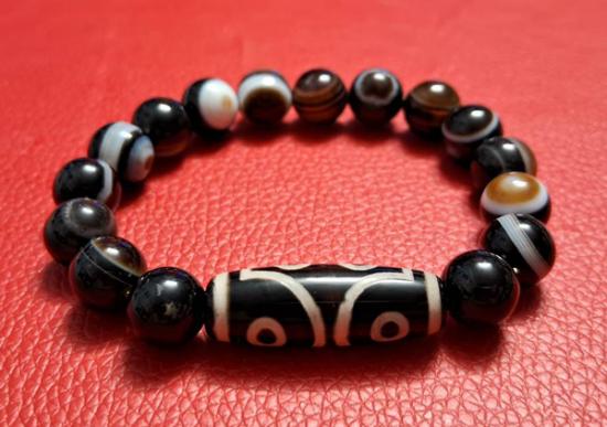 ประคำข้อมือหินอาเกต ขนาด 10 มิล หัวหินทิเบต 7 ตา ร้อยด้วยเอ็นยืด ขนาดฟรีไซด์ (กท.87)