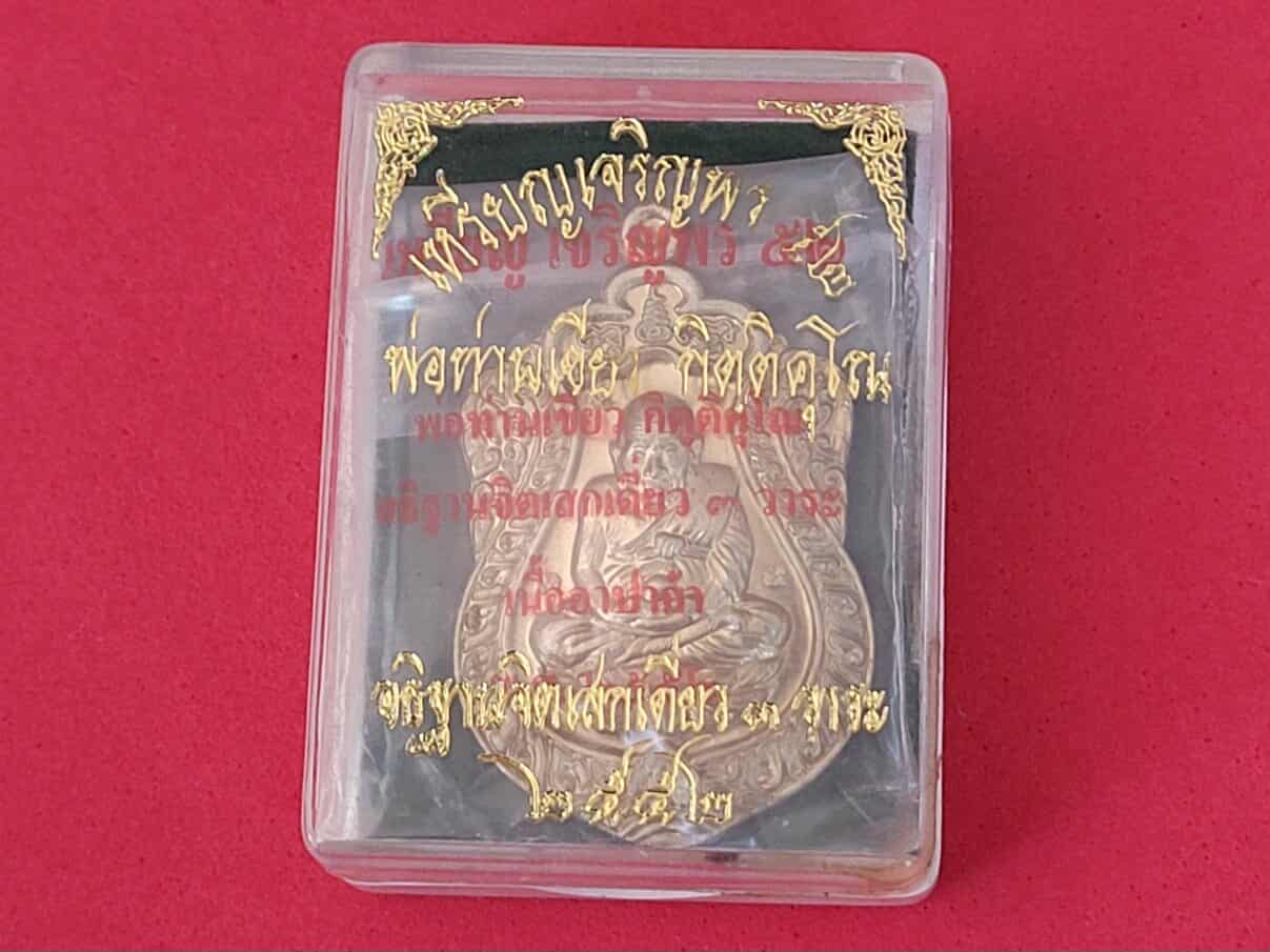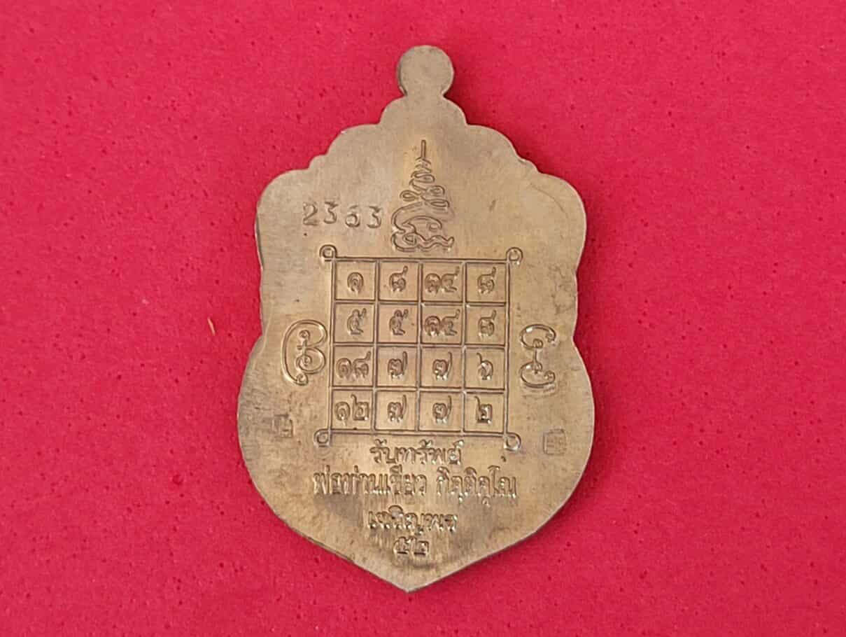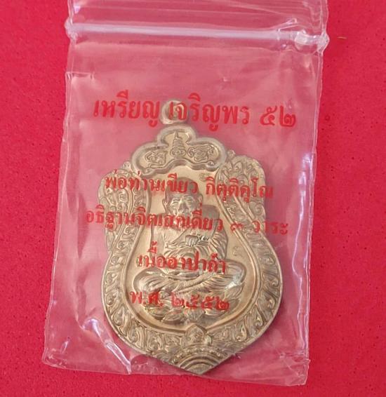 เหรียญหลวงพ่อทวด รุ่นเจริญพร 52 พ่อท่านเขียว กิตติคุโณ ปลุกเสก 3 วาระ เนื้ออัลปาก้าพร้อมกล่องเดิม ซองเดิม ไม่ผ่านการใช้ ด้านหลังตอกโค๊ด 2363