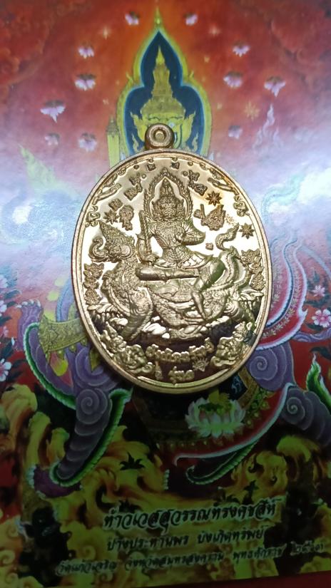 เหรียญท้าวเวสสุวรรณทรงคชสีห์ เนื้อทองแดง หลวงพ่อนวณ วัดแก้วเจริญ ตอกโค๊ทแจกทาน พร้อมซองคาถาท้าวเวส |