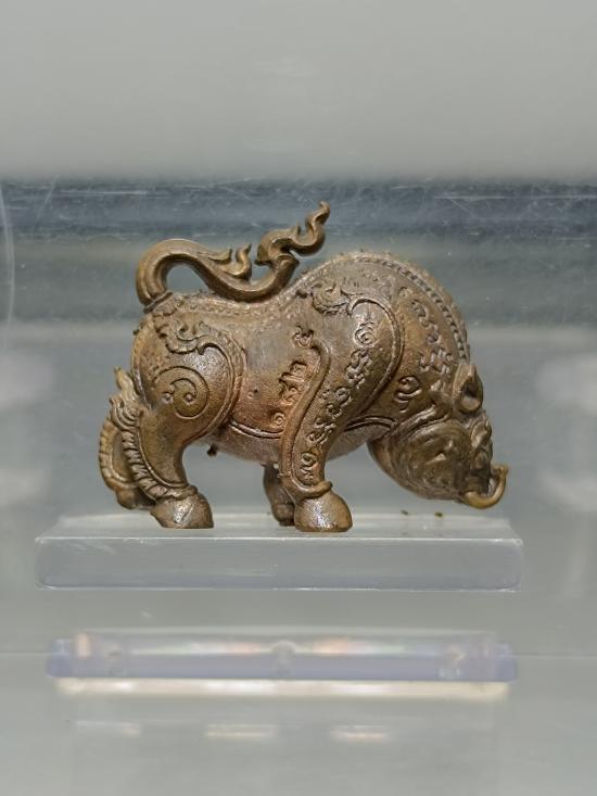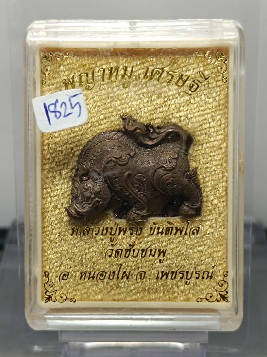 พญาหมูเศรษฐี ปี2560 หลวงปู่พริ้ง วัดซับชมพู่ จ.เพชรบูรณ์ (ขนาดสูง 2.0 กว้าง 2.5 ซ.ม.) เนื้อสำริดโบราณ หมายเลข 1825 |