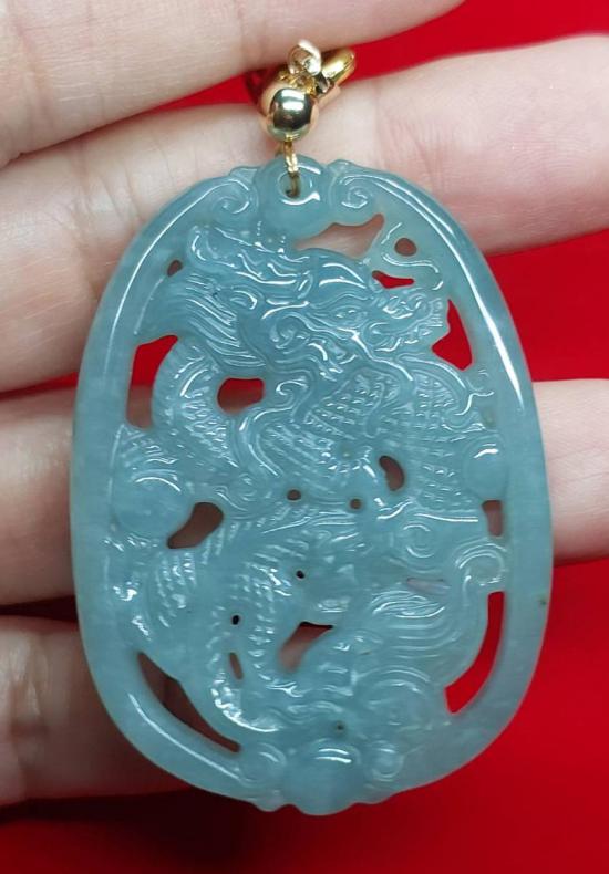 จี้มังกรหยก (มังกรนำโชค) วัดมังกรกมลาวาส (เล่งเน่ยยี) และวัดบรมราชากาญจนาภิเษกอนุสรณ์ (วัดเล่งเน่ยยี่ 2) เนื้อหยกสีโอเชี่ยนบลู เนื้อวุ้น