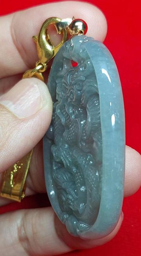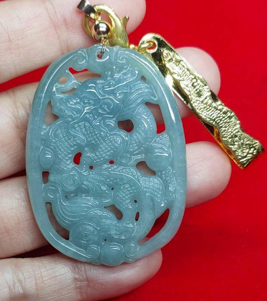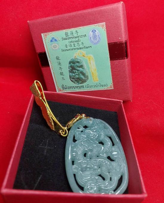 จี้มังกรหยก (มังกรนำโชค) วัดมังกรกมลาวาส (เล่งเน่ยยี) เนื้อหยกสีโอเชี่ยนบลู สวยๆ |