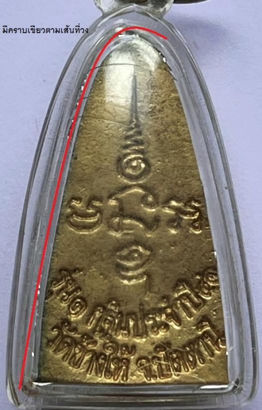 -พลิกพระไปด้านหลัง ขอบซ้าย+ขอบบนจะเห็นคราบเขียวตามแนวเส้นสีแดงที่ลาก ตามภาพที่2