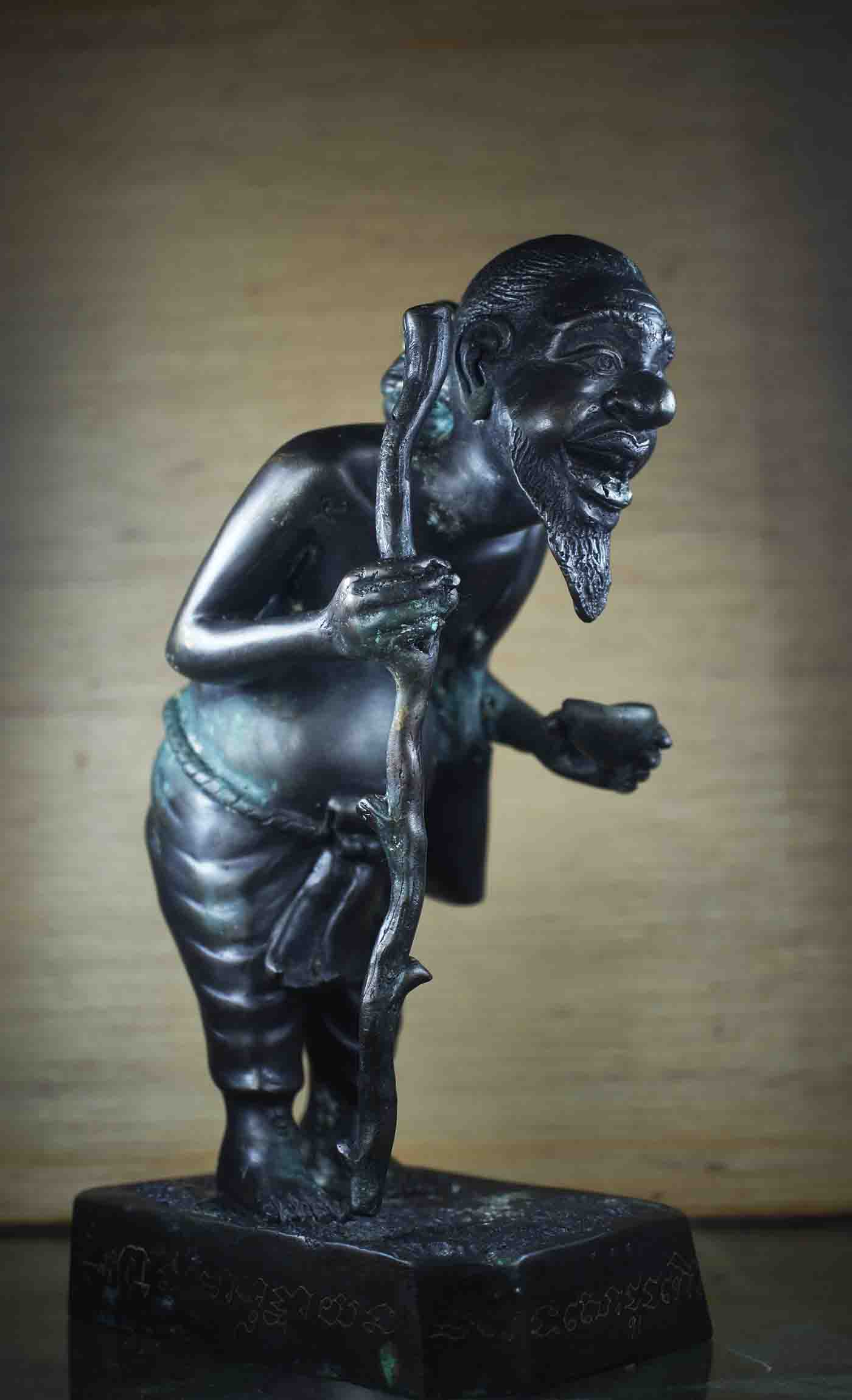 พระบูชา ชูชก รุ่นแรก ปี 2550 หลวงพ่อสาคร วัดหนองกรับ ออกสำนักสงฆ์ วัดเขาเนินหย่อง ระยอง ก้นอุดผงพรายกุมาร ตระกรุตเงิน สาริกาคู่ ฝังเหรียญ ชูชก เนื้อทองเหลืองลมดำ สร้างน้อย 300 องค์ **ขนาด สูง 9 นิ้ |