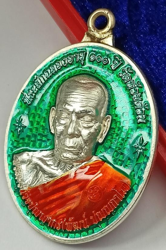 เหรียญห่วงเชื่อมหลังเต่า รุ่น"อมตะพัฒน์ปาฏิหาริย์" หลวงพ่อพัฒน์ วัดห้วยด้วน เนื้อเงินลงยาสีเขียว เบอร์ 38 พร้อมกล่องเดิมครับ (น้ำหนักเหรียญ 20.50กรัม)