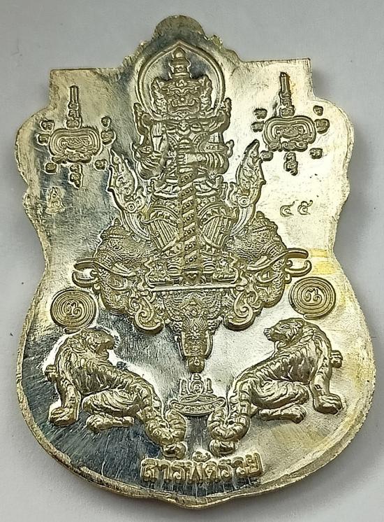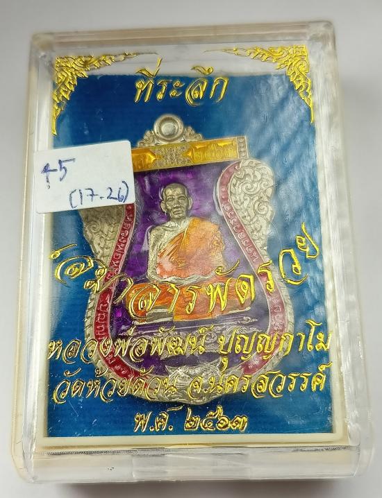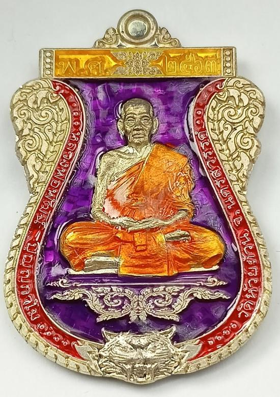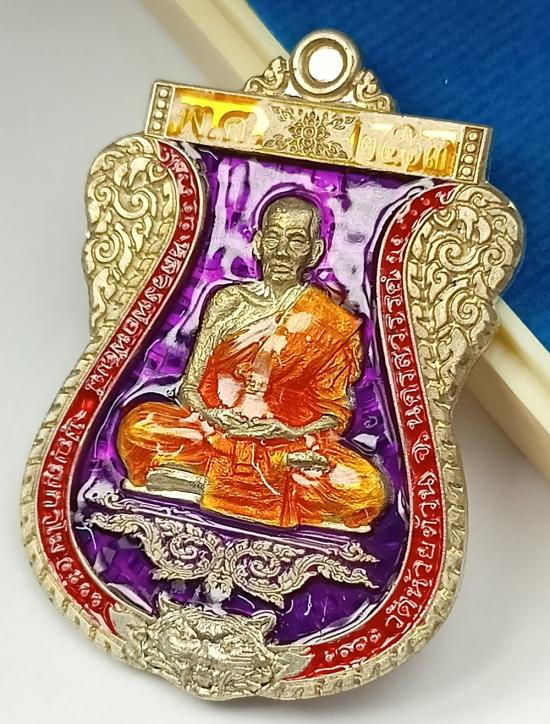เหรียญเสมา "สารพัดรวย" หลวงพ่อพัฒน์ วัดห้วยด้วน เนื้อเงินลงยาขุ้ยพื้นสีม่วง (น้ำหนัก 17.26กรัม) เบอร์ 45 พร้อมกล่องครับ
