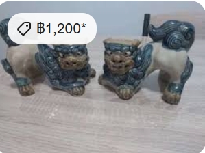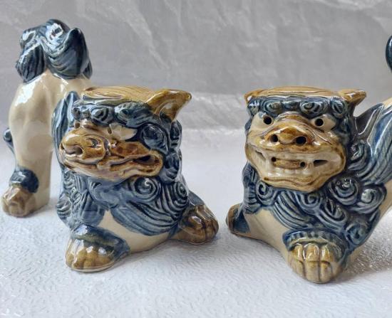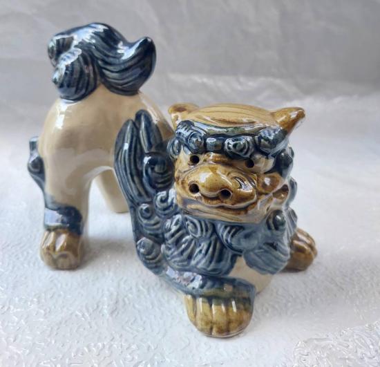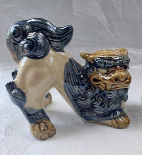 สิงโตเทพผู้พิทักษ์(ชีซ่า) 1คู่ เนื้อกระเบื้องเคลือบจากโอกินาว่า พร้อม ฮู้เทพพระเจ้ากวนอู (วัดเล่งเน่ยยี่ 2)