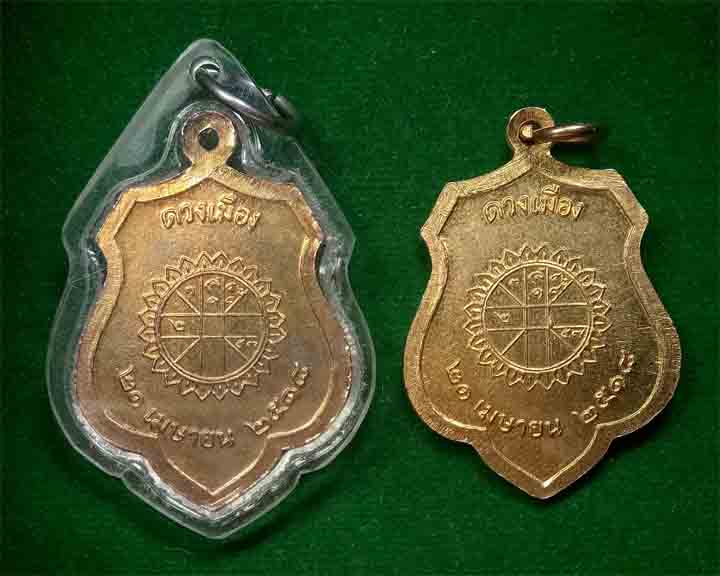 เหรียญหลักเมืองกรุงรัตนโกสินทร์ หลังดวงเมือง กะไหล่ทอง ปี18 รวม 2 เหรียญ |