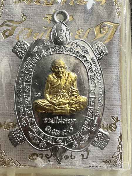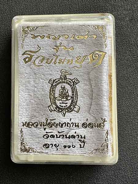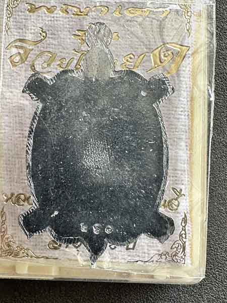 พญาเต่า รุ่นรวยไม่หยุด หลวงปูอัญญาถ่าน อ่อนสี เนื้อตะกั่วหน้ากากฝาบาตร หลังเรียบ เลขโค้ด 261 วัดบ้านด่าน ปี62