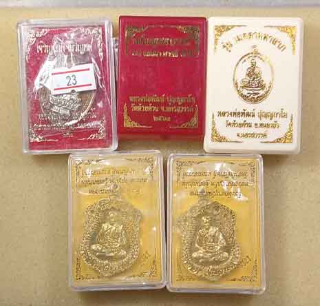 เหรียญหลวงพ่อพัฒน์ วัดห้วยด้วน 3 เหรียญ + หลวงพ่อบุญเกิด ฐิตสัมปันโน วัดสามัคคีราษฏร์ นครสวรรค์ 2 เหรียญ |