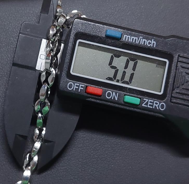 สร้อยสแตนเลสลายเมล็ดกาแฟ ยาว 26 นื้ว พร้อมสปริงก้ามปูสแตนเลสหมุนได้ เมล็ดกาแฟกว้าง 5 มม. หนา 2.3 มม.