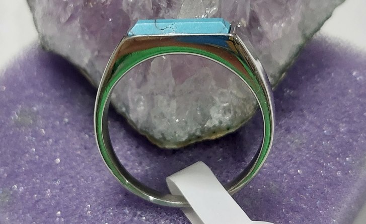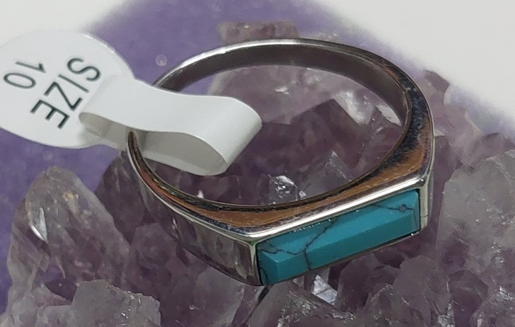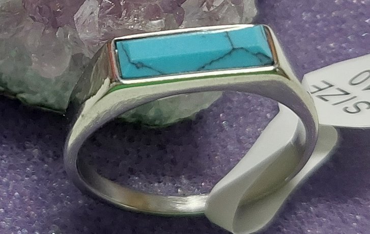 แหวนหัวเทอร์ควอยซ์หรือหินการเวก ตัวเรือนแหวนเป็นสแตนเลสขัดเงาไม่ลอกไม่ดำ ขนาดแหวนเบอร์10 |