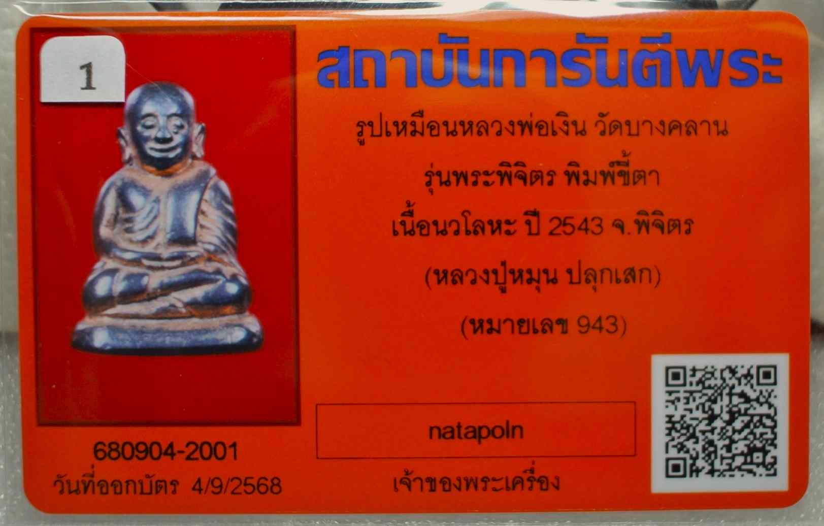 หลวงพ่อเงิน รุ่นพระพิจิตร พิมพ์ขี้ตา เนื้อนวะโลหะผิวไฟ ปี 43 หลวงปู่หมุนร่วมปลุกเสก