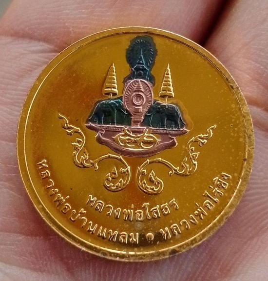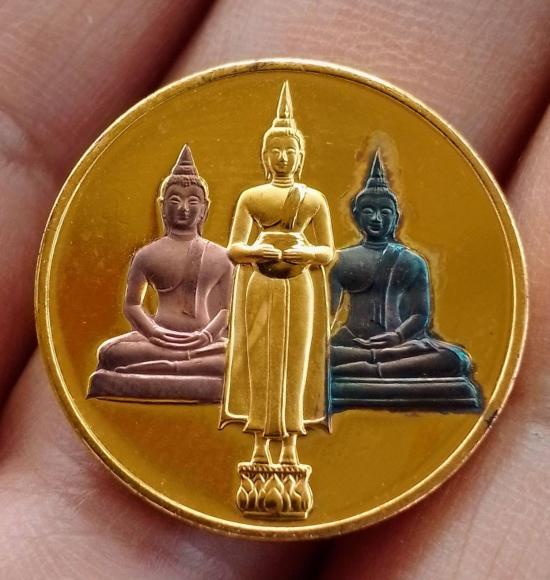 เหรียญหลวงพ่อสามพี่น้อง หลวงพ่อโสธร หลวงพ่อบ้านแหลม หลวงพ่อไร่ขิง ปี 2539 กะไหล่ทองสามกษัตริย์ขัดเงา |