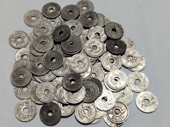 เหรียญสตางค์รูเนื้อนิกเกิล ราคา5สตางค์ จำนวน 100เหรียญ พ.ศคละกันตั้งแต่สมัย ร.6 ถึง ร.8 ครบ สภาพผ่านใช้ หายากกว่าเหรียญ10สตางค์