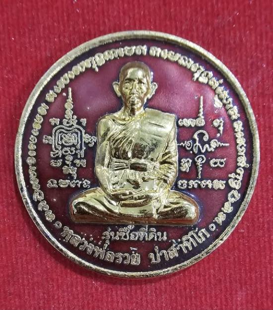 หลวงพ่อรวย วัดตะโก จ.อยุธยา เหรียญซื้อทีดิน ปี 2541 เนื้อกะไหล่ทองลงยาสีแดงหายากๆ