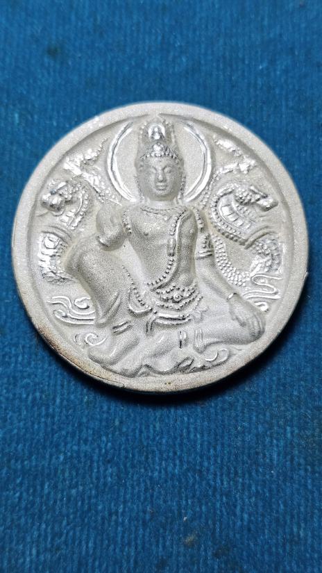 เหรียญขนาด 3.2 ซม. เนื้อเงิน (หนักประมาณ 23 กรัม) ไม่มีกล่องครับ