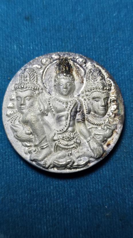 เหรียญขนาด 3.2 ซม. เนื้อเงิน(หนักประมาณ 25 กรัม) ไม่มีกล่องครับ