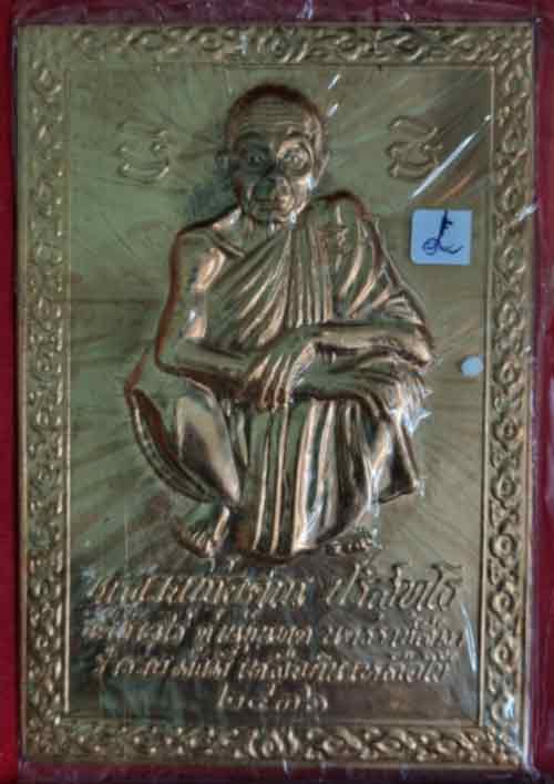แผ่นปั้มรูปเหมือน หลวงพ่อคูณ ขนาด 3.5x5.0 นิ้ว เนื้อทองแดง ถุงเดิม ปี36 |