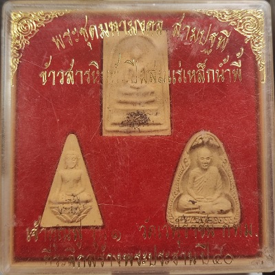 พระชุดมหามงคล สามปฐพี ข้าวสารหินพันปีผสมแร่เหล็กน้ำพี้ ชุด 3 องค์ เจ้าคุณฟู รุ่น1 วัดเวฬุราชิน กรุงเทพฯ ปี40 สวยคากล่องเดิม |