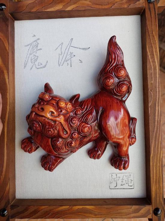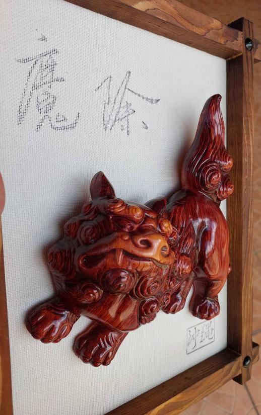 กรอบสิงโตเทพผู้พิทักษ์(ชีซ่า) เนื้อกระเบื้องเคลือบจากโอกินาว่า พร้อม ฮู้เทพพระเจ้ากวนอู (วัดเล่งเน่ยยี่ 2)