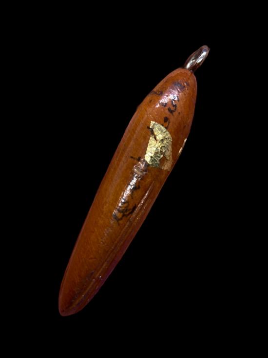 Q323. เครื่องรางไม้เก่าจารยันต์ ปิดทอง ไม่ทราบที่ (เคาะเดียวแดง) |