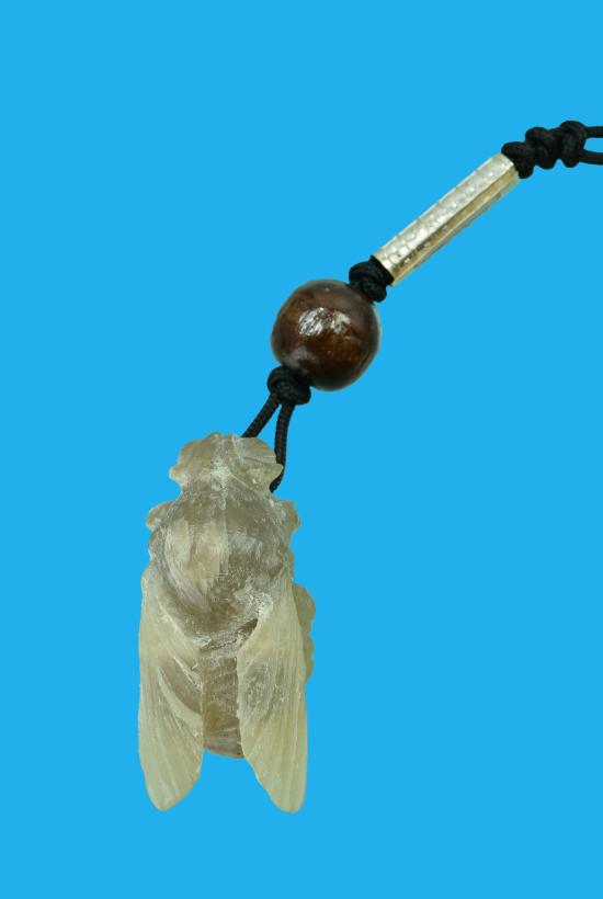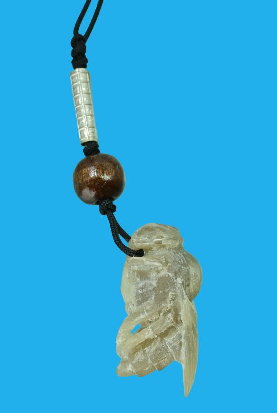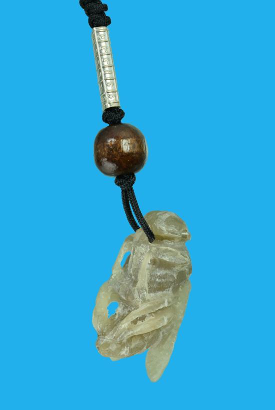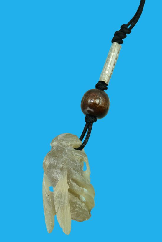 แมลงภู่คำเชียงตุง แกะจาก เขาควายเผือกฟ้าผ่า ขาทะลุ บรรจุปรอท ห้อยตะกรุดเงิน ๑ ดอก