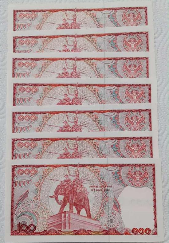 ## ธนบัตร 100 บาท ## ช้างแดง ## เลขเรียง 7 ใบ ((เลข 6 หลัก)) ไม่ผ่านการใช้งานสวยกริป ไม่พับ ไม่ยับ ไม่ติดสนิม ไม่เหลือง จำนวน 7 ฉบับ ครับ |