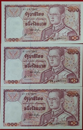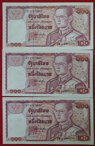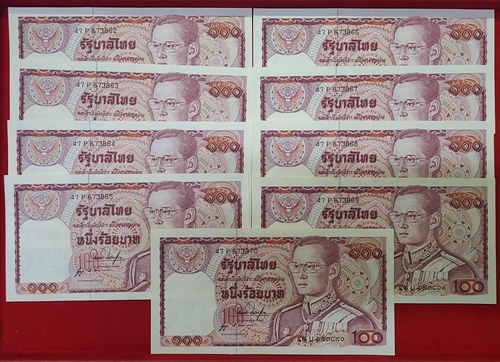 ธนบัตร 100 บาท ในหลวงรัชกาลที่ 9 แบบ 12 ด้านหลังช้างแดง เลข 6 หลัก หายาก เลขเรียง จำนวน 9 ฉบับ สภาพ UNC ใหม่,ไม่ได้ใช้,ไม่มีรอยพับ ลายเซ็น สมหมาย ฮุนตระกูล - นุกูล ประจวบเหมาะ |