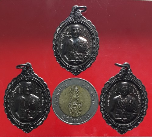 เหรียญครูบาบุญชุ่ม ปี 2548 เนื้อทองแดง 3 เหรียญ เคาะเดียวแดง