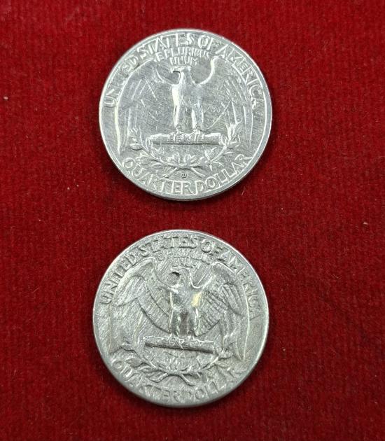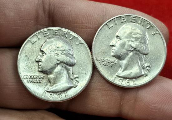 เหรียญควอเตอร์ (Quarter) ของสหรัฐอเมริกาปี ค.ศ. 1951,1961 ผลิตด้วยเงิน 90% (ทั้งหมด2เหรียญ) |
