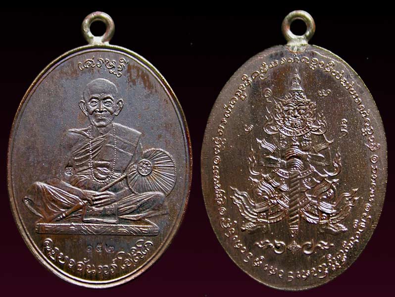 เหรียญเศรษฐีเนื้อทองแดงรมดำห่วงเชื่อม ครูบาจันทร์ โชติโก วัดน้ำแป้งวนาราม ........เคาะเดียวแดง
