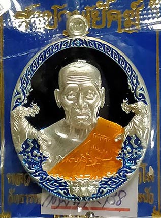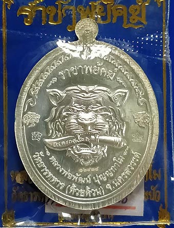 เหรียญหลวงพ่อพัฒน์ วัดห้วยด้วน "รุ่นราชาพยัคฆ์ปี" 2563 เนื้อเงินลายเสือ ลงยาน้ำเงิน ลงยาจีวร เลขสวย