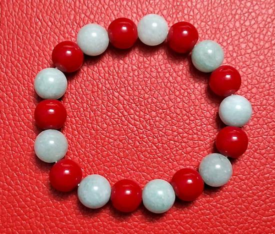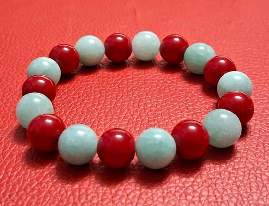 ประคำข้อมือหินปะการังแดง+หินอความารีน หินแท้ 100 % ขนาด 10 มิล ร้อยด้วยเอ็นยืด ขนาดฟรีไซด์ (กท.86)