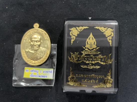 !!!เหรียญ 2 อาจารย์ หลวงปู่ทวด-หลวงปู่ดู่ วัดสะแก เจ้าสัวพันล้าน จัดสร้างโดยคุณบอย ท่าพระจันทร์ เนื้อกะไหล่ทอง เลขเรียงสลับ 1302 พร้อมกล่องเดิม