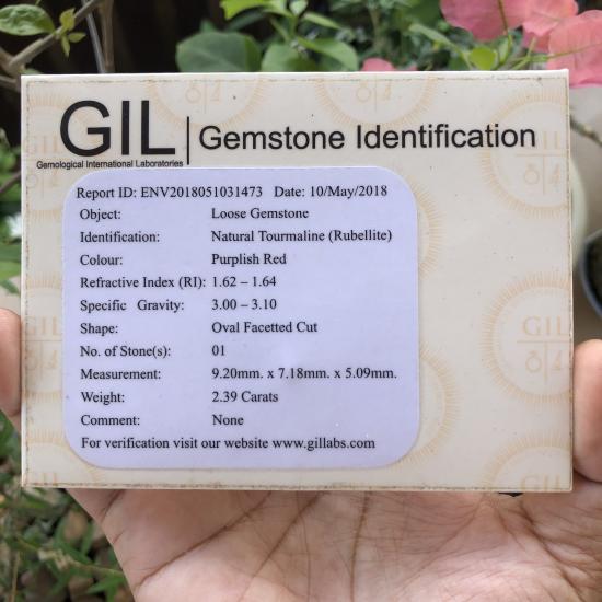 รูเบลไลท์ทัวมาลีน 2.39 กะรัต พร้อมบัตรรับรอง GIL