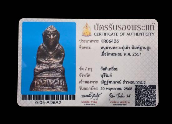หหนุมานหลวงปู่เม้า วัดสี่เหลี่ยม จ.บุรีรัมย์ พิมพ์ฐานสูง เนื้อทองผสมหล่อโบราณ สร้างปี พ.ศ.2517