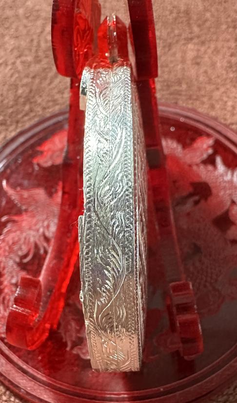 เงิน95% งานขึ้นมือร้อยเปอร์เซ็นต์ น้ำหนัก12กรัม ใส่เหรียญตอก1 แทบทุกเกจิครับ