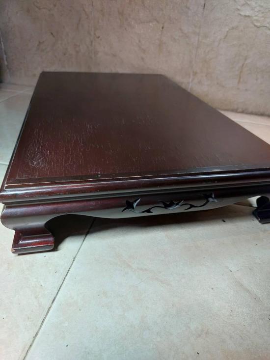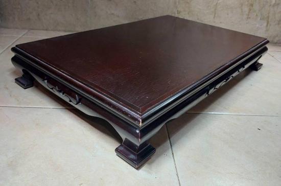 ฐานรองพระ หรือ ตั่งไม้เก่างานนอกมือสอง ขนาด กว้าง 13 นิ้ว สูง 3.5 นิ้ว ยาว 23 นิ้ว |