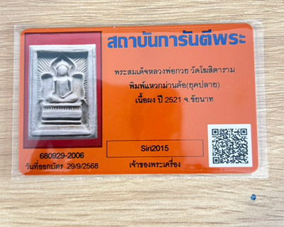 พระสมเด็จแหวกม่านหลวงพ่อกวย ปี 2521 เนื้อผง พิมพ์ต้อ วัดโฆสิตาราม จ.ชัยนาท ออกบัตรแล้วเรียบร้อย