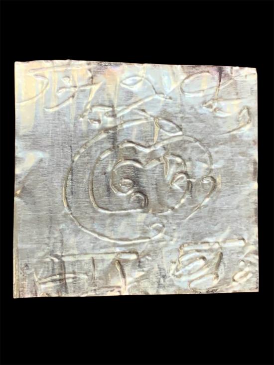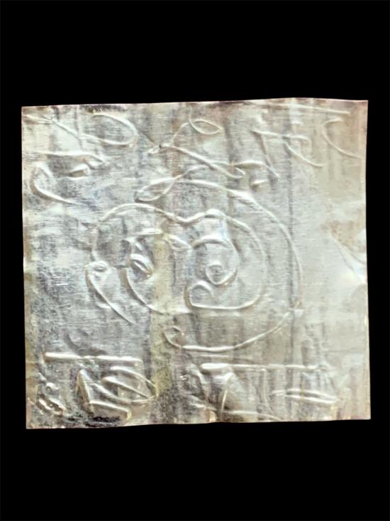แผ่นตะกรุดเงิน มีจารไม่ทราบที่ครับ